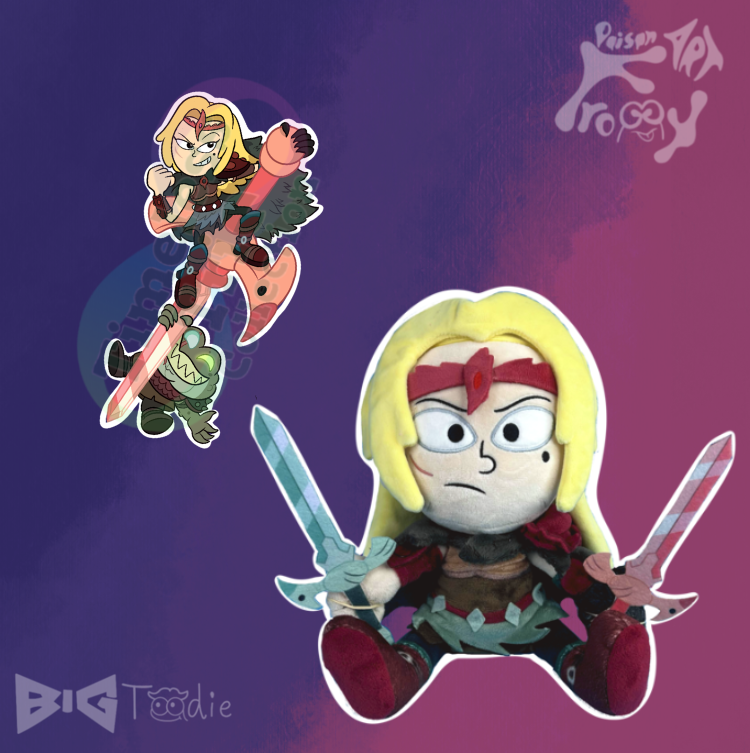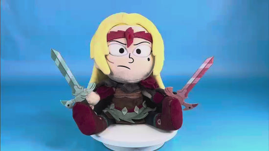 This plush is 24 cm tall (9.5 inches) made of soft minky fabric. She comes with her removable fluffy cape and sword accessories. (Please note the swords shown here are a prototype. Final version will have proper elastic straps, not rubberbands) Other changes include the addition of the cape clasp and embroidery on the pauldron.